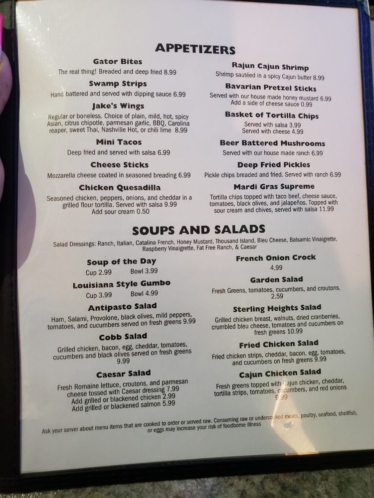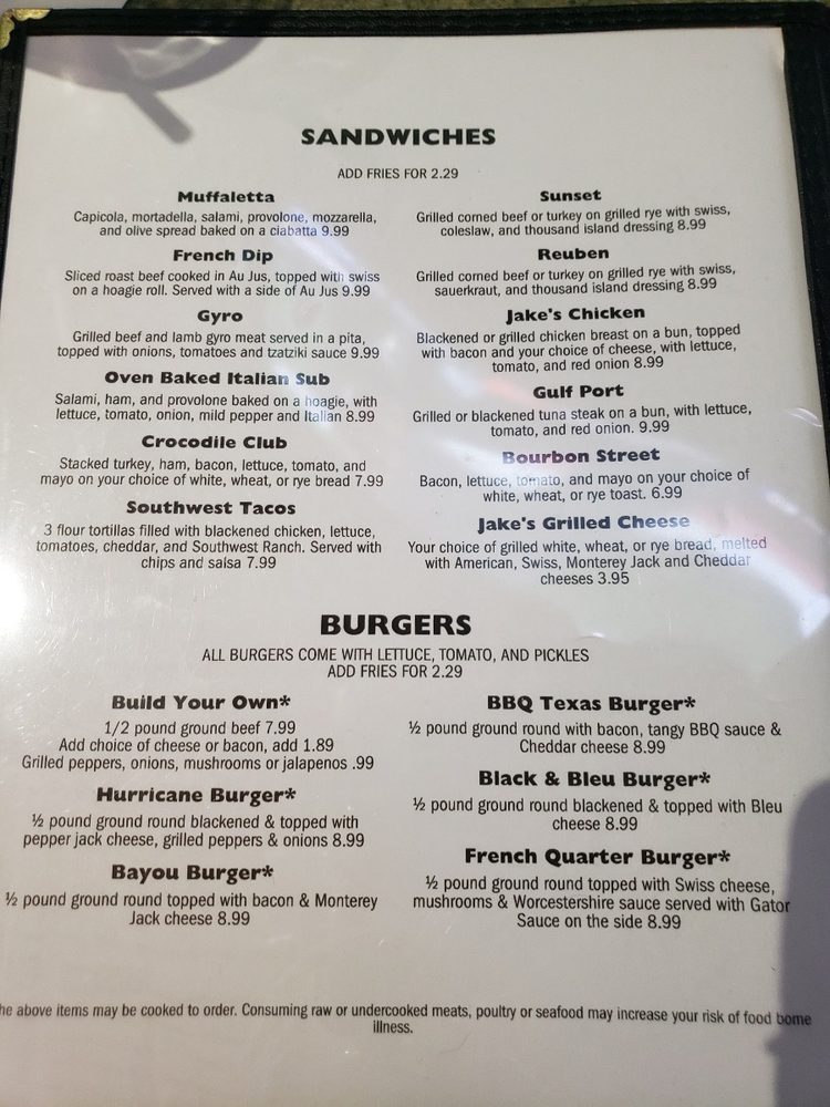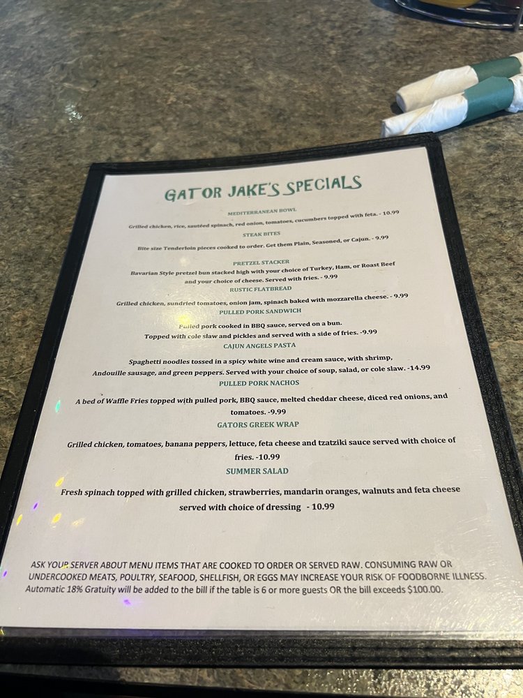 Gator Jakes Bar & Grill Menu (Update 2025)